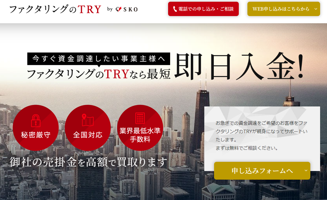 ファクタリングのTRYとは、株式会社SKOが運営するファクタリングサービスです。